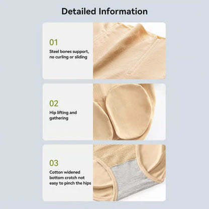 🔥 Anti-Gravity Shaping Underwear features a high-rise waistline that effectively wraps around the entire abdominal area, covering belly bulges completely. Equipped with three elastic support ribs, it acts like an invisible waist corset, offering strong support and a sculpted silhouette. It not only prevents rolling and slipping but also ensures long-term shaping of the waistline.
