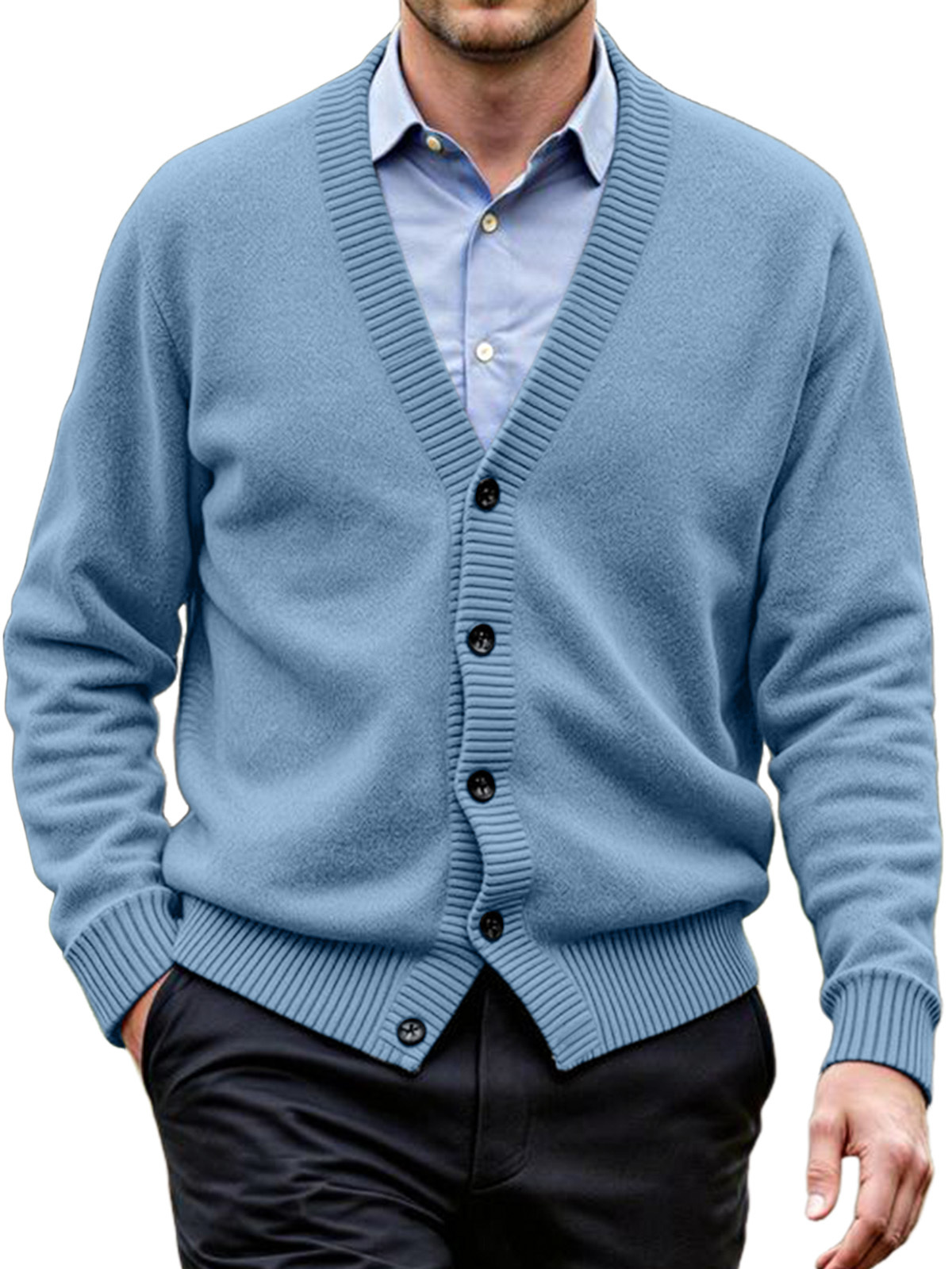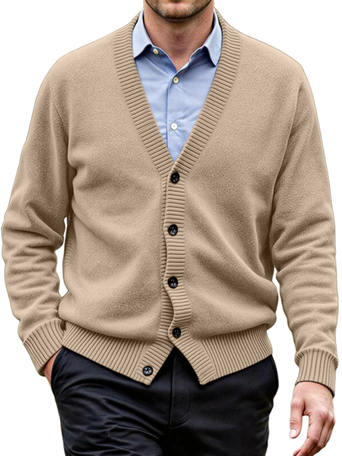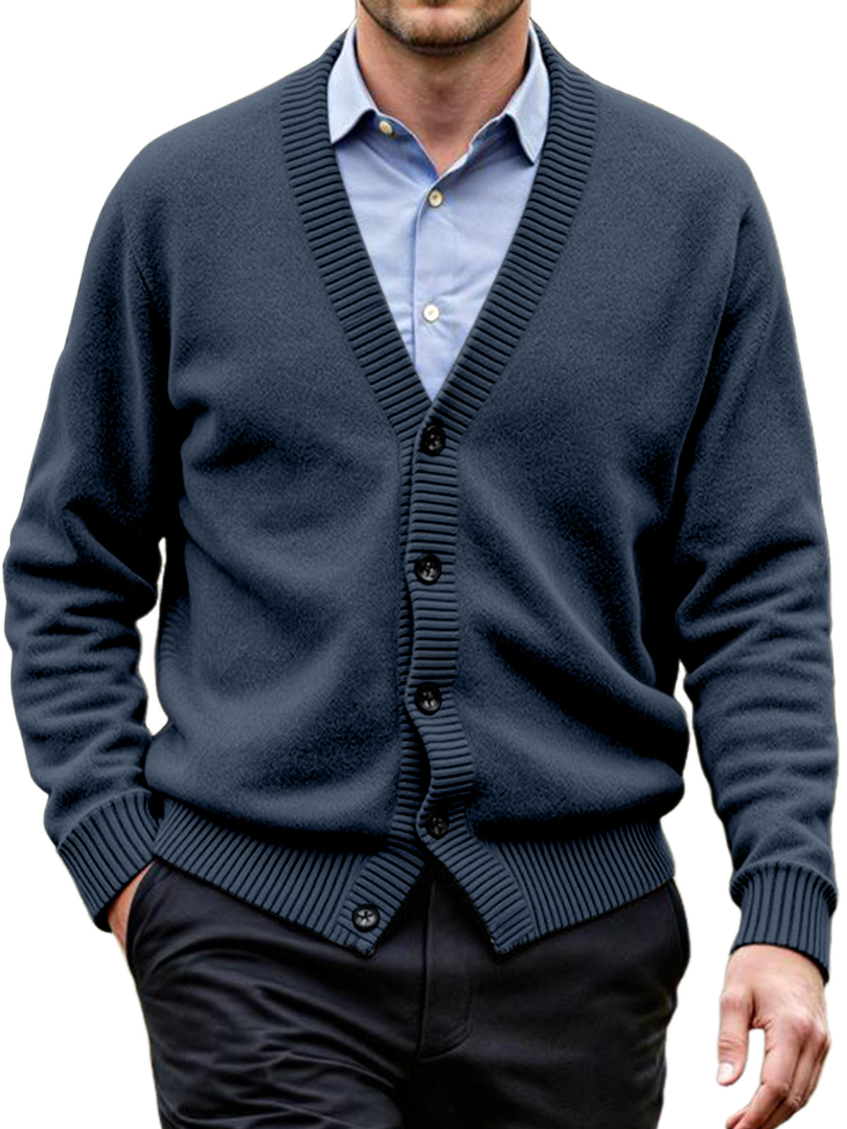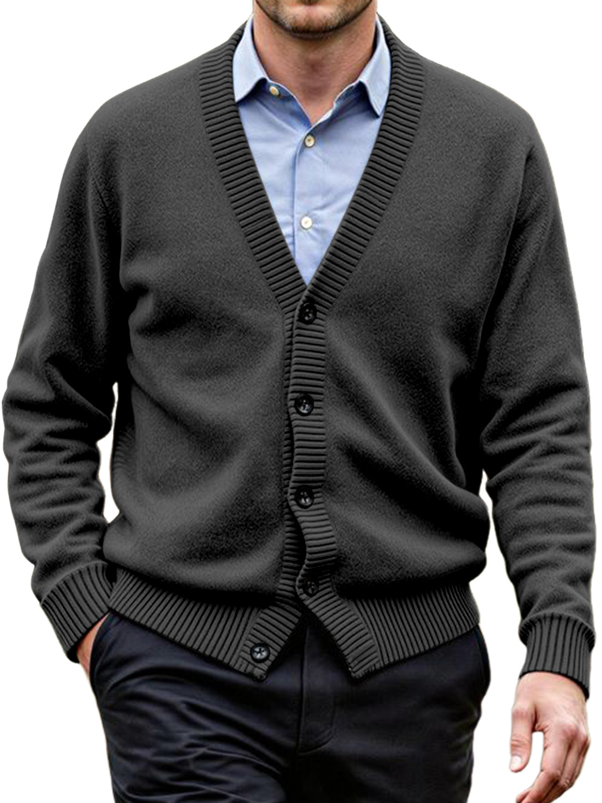 Men's Daily Casual Solid Color Knitted Cardigan Sweater