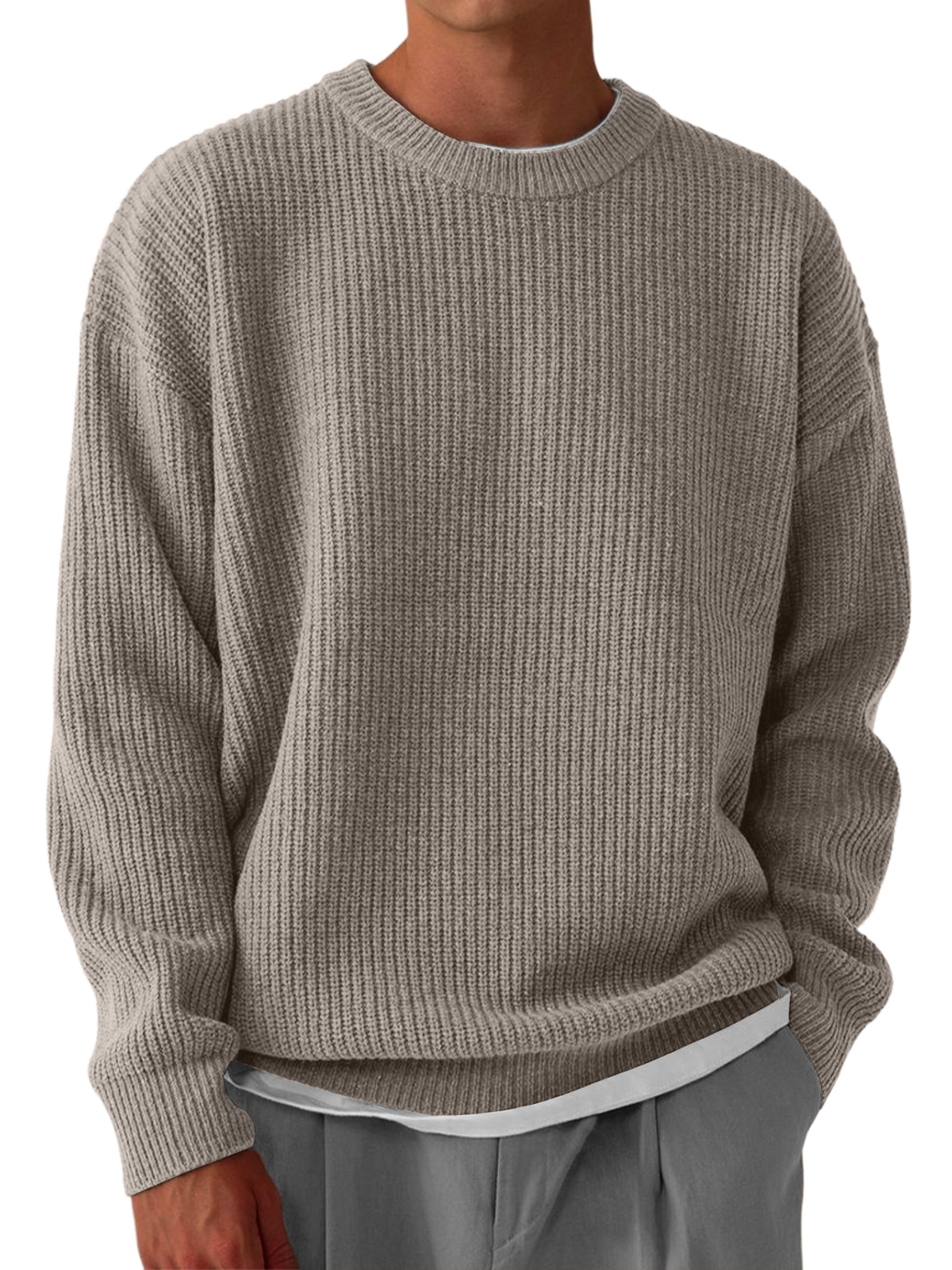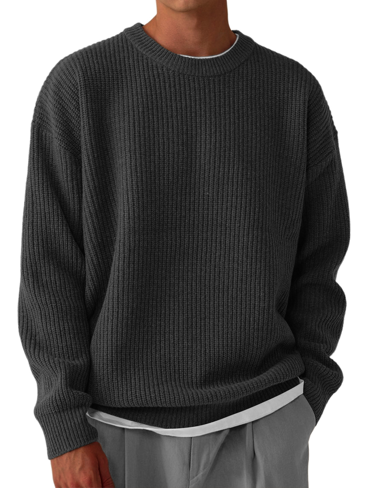 Men's Casual Round Neck Solid Color Knitted Sweater